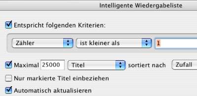 Ich muss gestehen, ich fand diese Intelligenten Wiedergabelisten bei iTunes erst ziemlich überflüssig. Sowohl im Programm als auch auf dem iPod. Jetzt habe ich allerdings einen Anwendungsfall gefunden und plötzlich sind die Dinger echt praktisch!