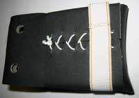 Das Material der Tasche ist relativ dünnes Kunstleder. Die Tasche (nein, keine Zerlegungsbilder) besteht – sofern ich das richtig verstanden habe – aus einem Stück, ausgeklappt müsste sie aussehen wie ein T. Dieses ist auf dem Rücken so vernäht, dass man den iPos hineinstecken kann. Der Stiel vom T wird dann als Schutz über das Display gezogen und mit einer breiten, elastischen Lasche verschlossen.