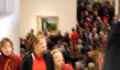 Nach über einer Stunde Wartezeit – der Nachwuchs hatte sich bislang recht gut gehalten, wurde nun aber extrem zappelig, hatten wir dann eine Karte und durften die Ausstellung betreten. Ich hätte mir ja denken können, dass es voll werden würden, aber das, was da kam war unverschämt! Ich vermute mal, dass die Ausstellung der 60 Bilder auf ca. 500 qm aufgebaut war. Weiter vermute ich, dass sich mindestens 2000 Leute in der Ausstellung befanden.