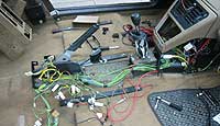 Leider scheint Citroen nicht unbedingt viel von unterschiedlichen Kabelfarben zu halten. So blickt man auf eine grüne Spagetti-Landschaft. Da ich meine Endstufen unter der Rückbank platzieren wollte, habe ich die hinteren Boxenkabel gekappt und die vorderen entsprechend verlängert.