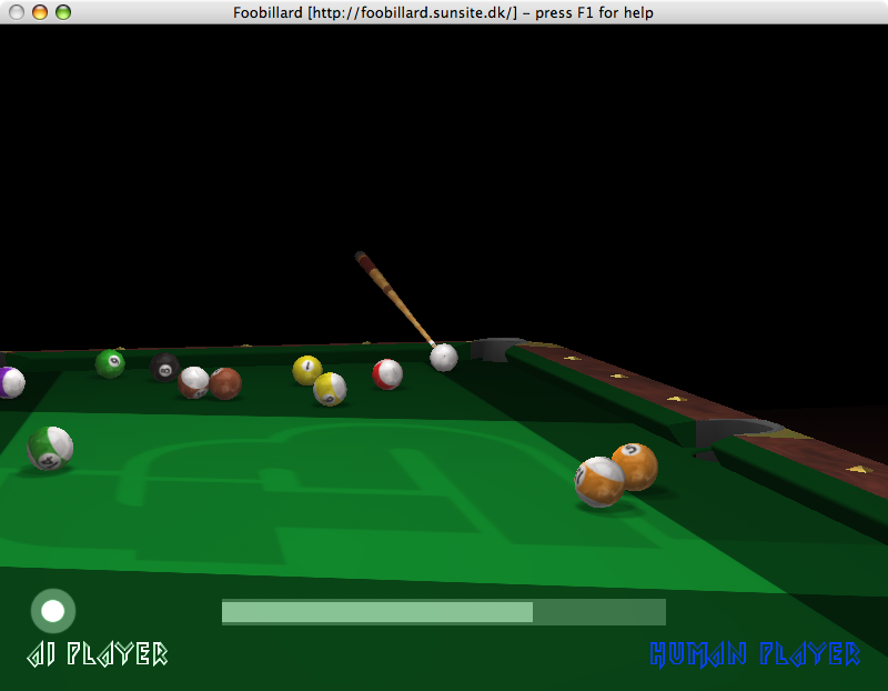 Bis eben gerade. FooBillard sieht besser aus, als alle anderen Billard-Spielchen, die ich so bislang auf dem Rechner gesehen habe. Ursprünglich ein reines *nix-Spiel gibt es zu unserem Glück in der Version 2.5 auch ein Mac OS X Binary (und in der Version 2.9 eine Windows-Version).